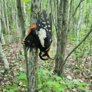 На нашем пути встретился дятел, который, похоже, слишком усердствовал на работе 🙈.
